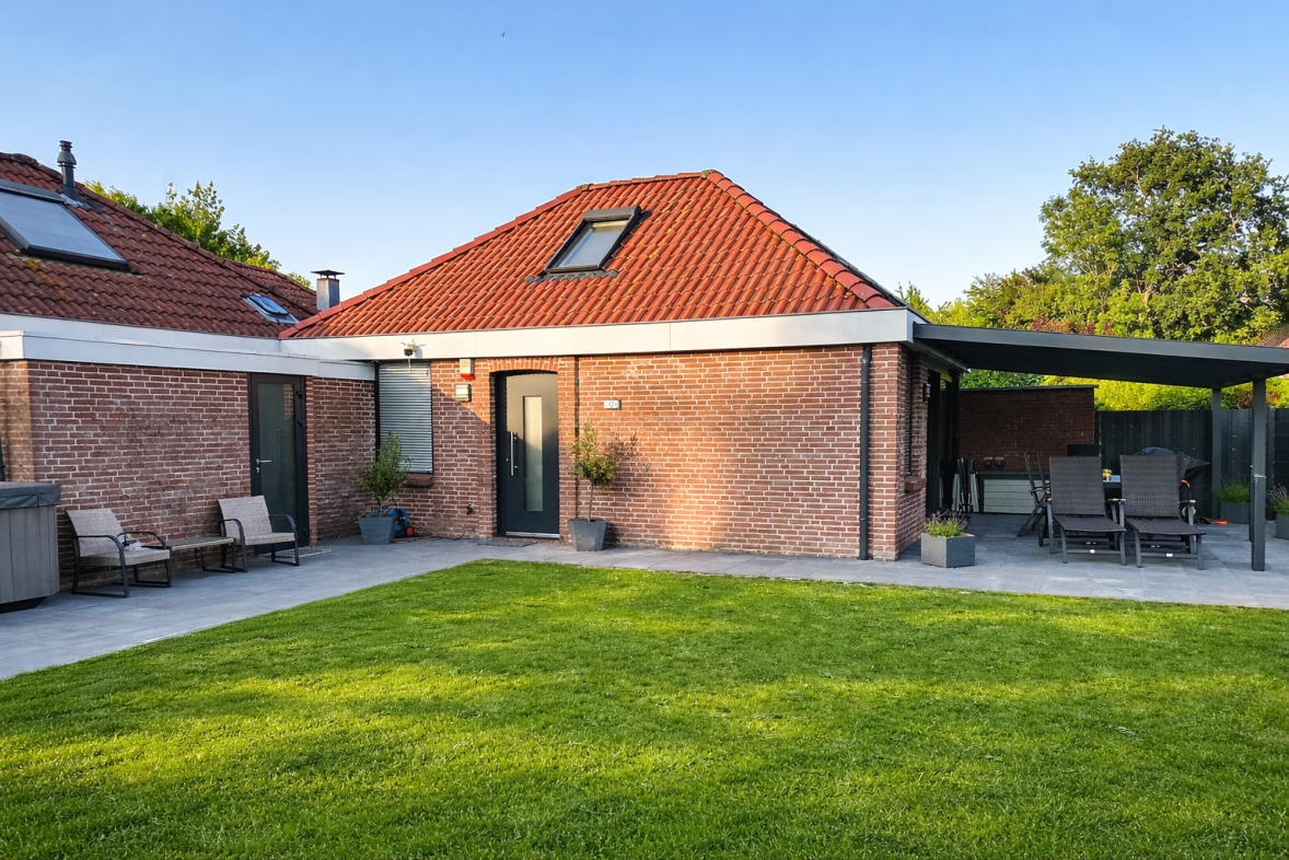 Ansicht Ferienhaus 12b mit eingezäuntem Garten