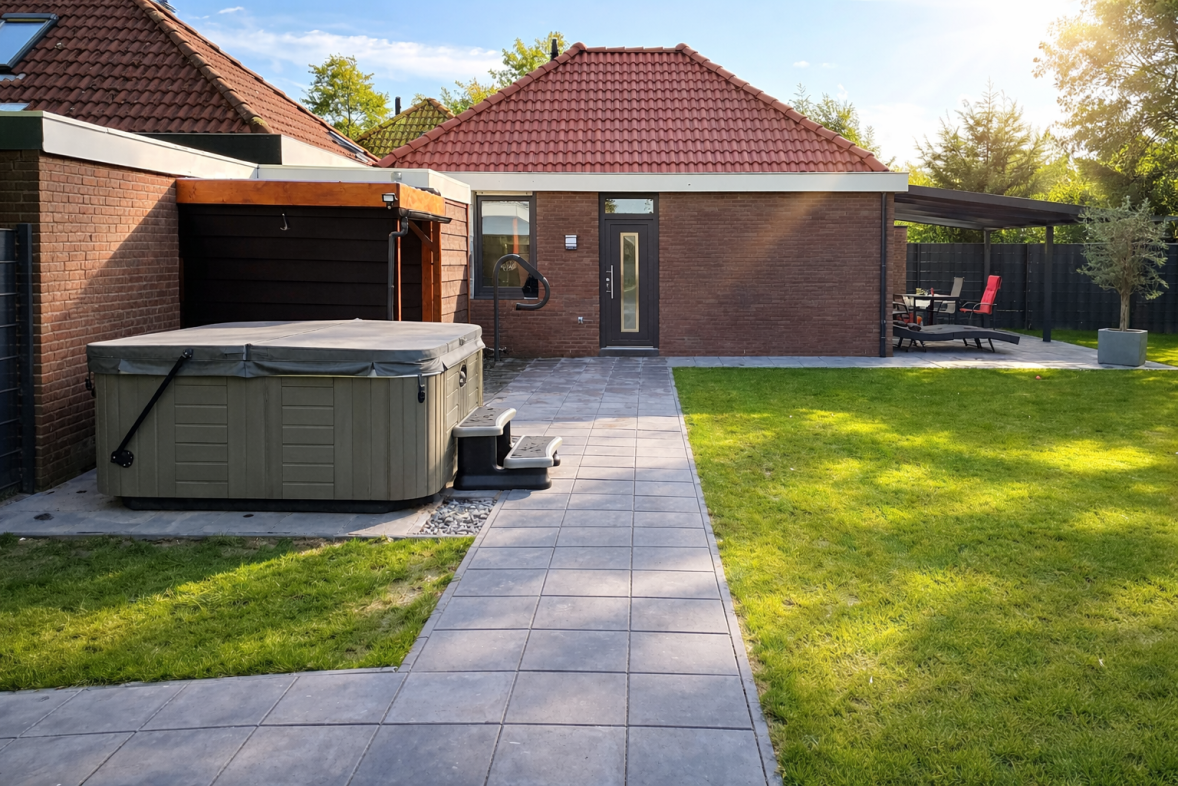 Ansicht Ferienhaus 8c mit eingezäuntem Garten